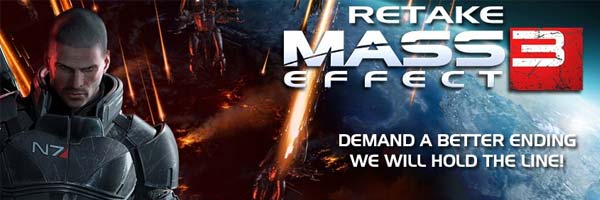 So, of course, some people were upset about the ending, but what was unusual is how vehemently some have not just been complaining about it (as is their democratic right, O Canada, etc), but actually demanding a better one. This group of gamers has started a movement and petition called Retake Mass Effect 3, featuring the tagline, “Demand a better ending. We will hold the line!” and images like this one, which I actually had to research because I couldn’t believe it actually existed.