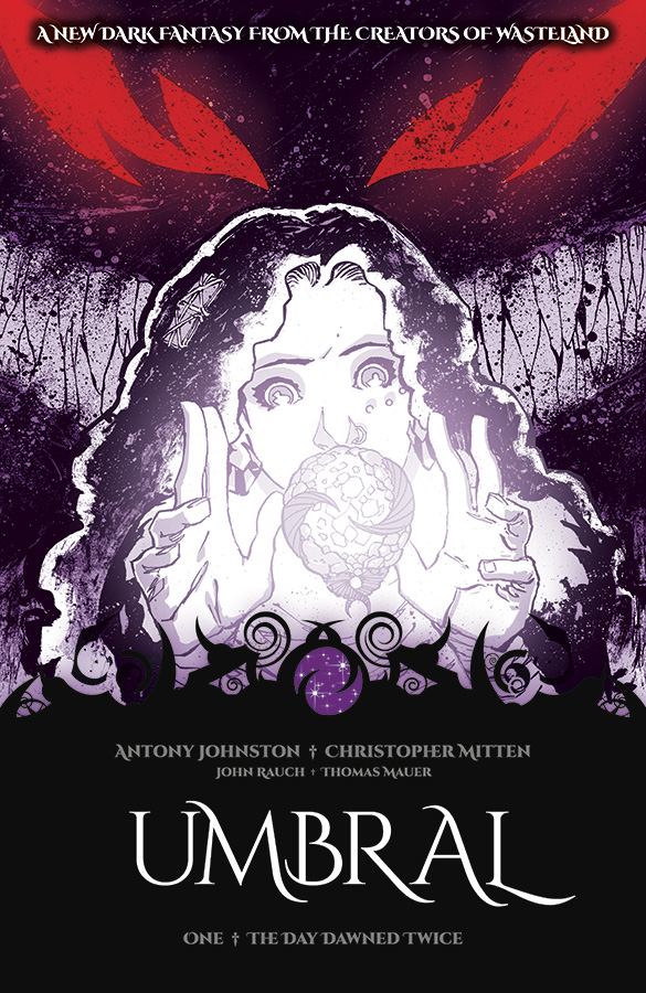 Umbral is surprising. Set up as a more standard fantasy tale, with royalty and bards and celebratory festivals and thieves and the like, the proceedings take a sharp turn fairly early. From there, a creeping sense of dread clings to what should feel like a fairy tale, a dark shadow sliding across a shining kingdom of yore. The atmosphere is an equal result of all creators: Johnston (listed as the story’s scribe) provides the bones. Christopher Mitten (the illuminator) takes the skeleton and plies sinew and skin, pulling it taught into something beautifully grotesque. John Rauch (the painter) slathers all in an etherial glow, adding tone and definition with vibrant colour seldom seen or utilized in the medium. Thomas Mauer provides voice, quietly and delicately dancing about, enhancing while never once stepping on toes or drawing attention in odd directions. The result is an exquisite looking book with a premise and feel that will pull you in deep.