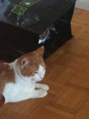 Brandon: Oh, you mean Max? He’s pretty great. He’s a little over two years old, and super playful - which means anything that dangles and is moved is fair for swiping. So far, that’s provided for a lot of fun. Jim - our original cat - has been taking things… well? She’s a bit upset, but is starting to warm up to him, despite moments like this.